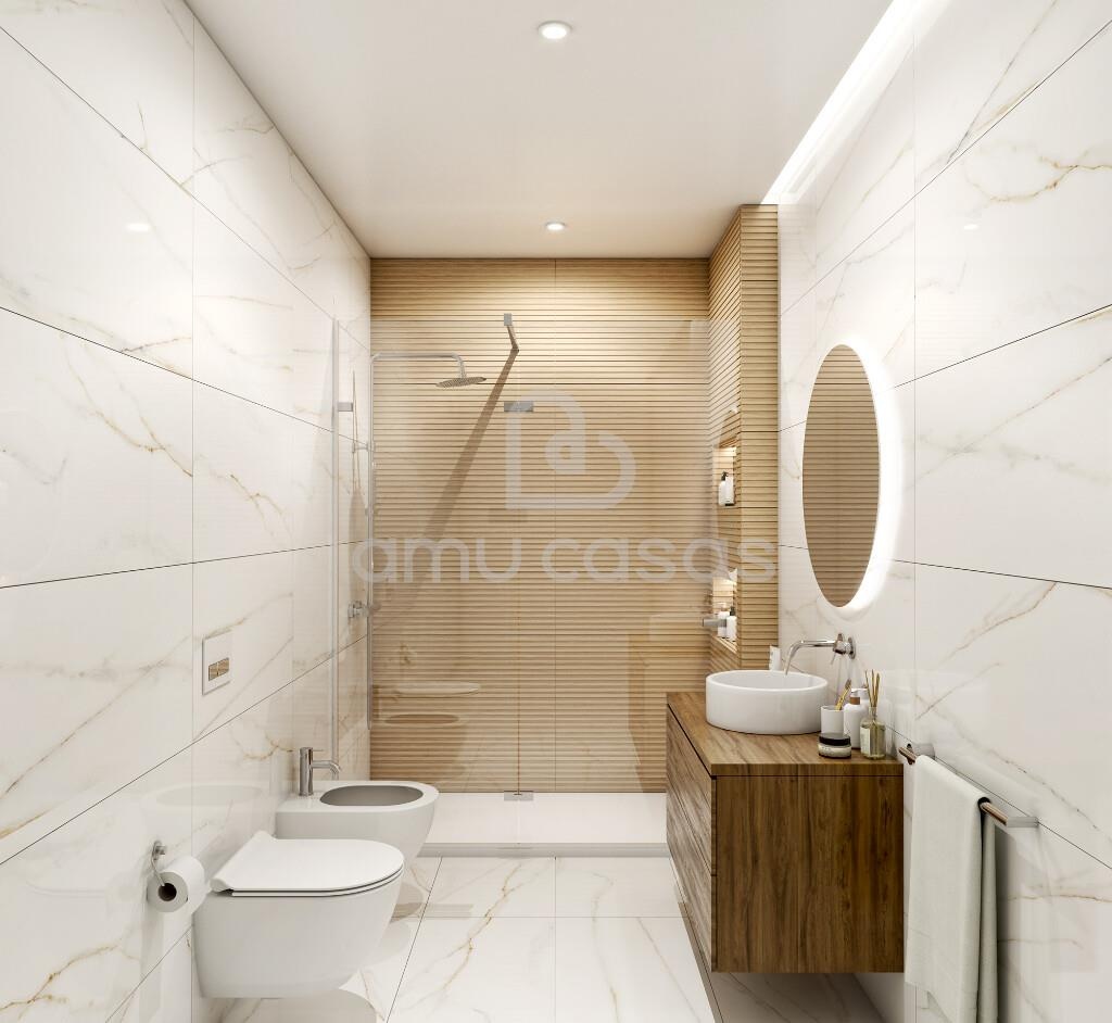 No interior, o conforto atinge um nível superior graças ao ar condicionado por conduta, garantindo climatização uniforme e discreta em todas as divisões. As instalações sanitárias apresentam acabamentos de elevada qualidade, equipadas com material sanitário Sanindusa, símbolo de elegância e durabilidade.