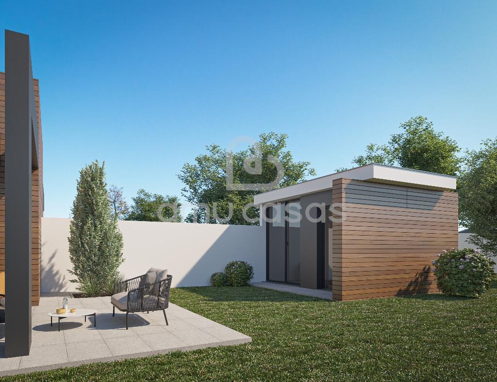 Jardim envolvente, com zonas de lazer e possibilidade de instalação de piscina